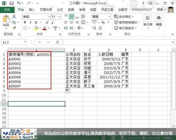 ①打开我先前准备好了的表格,直接在A2单元格输入: ="A"&TEXT(ROW()-1,"00000") 公式的意义我稍后为大家介绍。