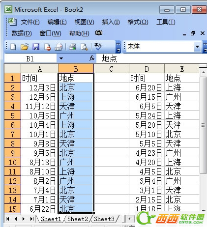 步骤二、回到Excel工作表,选中“地点”这一列;
