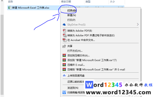 右键单击Excel图标,在弹出的右键菜单中选择打开命令。