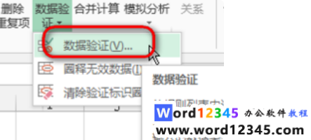 4、此时会在“数据”标签的下面找到“数据验证”的按钮,点击该选项,然后继续下一步。