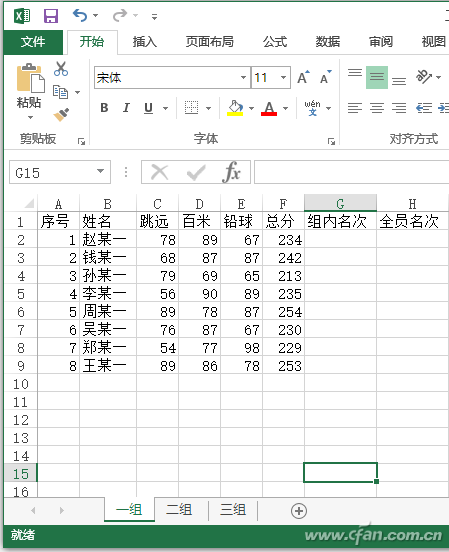 上述过程做完之后,当更改任一工作表中的成员成绩时,成员所在的“组内名次”和“全员名次”都会自动地发生相应改变。