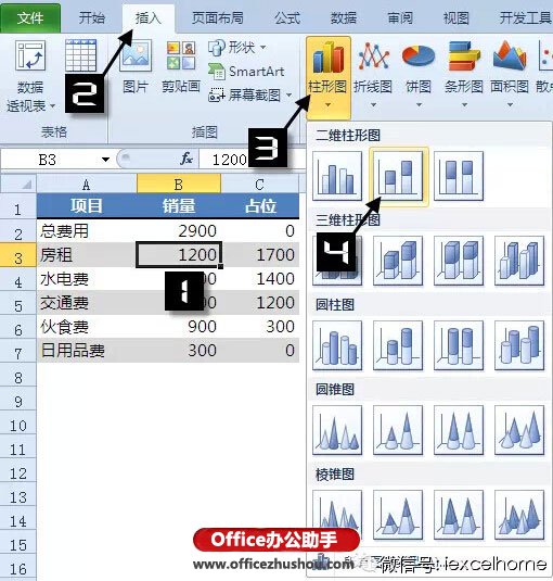 点击数据区域的任意单元格,【插入】【柱形图】选择【堆积柱形图】