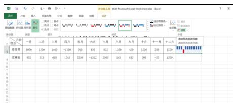 如图所示的“2015年月份销售盈亏表”,可以在表中插入一图表,让表格更加直观,一目了然各个月的波动。