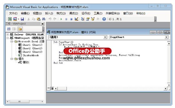 1、启动Excel并打开包含图表的工作表,打开Visual Basic编辑器,在工程资源管理器中添加一个模块,在模块的“代码”窗口中输入程序代码,如图1所示。具体的程序代码如下所示: