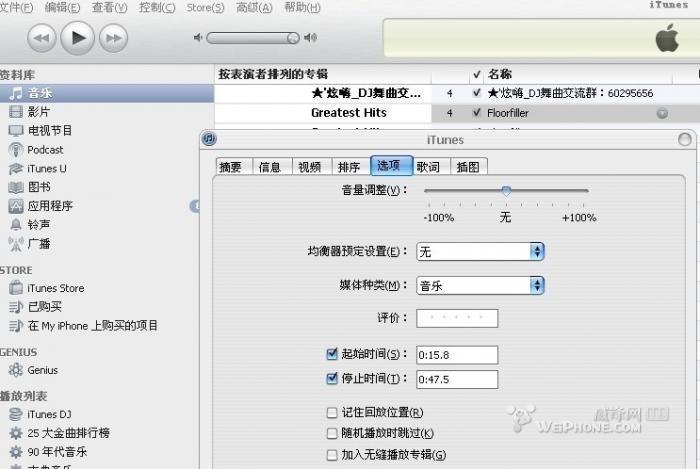 18.6M ![]() 2、点击左侧的“音乐” 3、在右侧的MP3等音乐列表中选中一个你要制作铃声的名字 4、然后,在这个名字上点击鼠标右键选择“显示简介”,弹出窗口 5、在弹出窗口中选择选项 6、在选项标签栏中设定开始时间和结束时间 改时间根据你的喜好截取其中的某一段作为铃声 7、确定退出窗口,并回到刚才那个MP3名字上 8、再次在这个名字上点击鼠标右键,选择“创建AAC版本(V)” 这时,在刚才那个文件的下边多出来一个相同名字的音乐名,而且时长就是你自己设定的时长 9、在这个名字上点击鼠标右键选择【在windows资源管理器中显示】,如图 10、把这个文件名的后缀,即最后一个字母改为【r】,如图 ![]() 11、复制这个刚改名的这个文件(不知道怎么复制?晕:点击它后鼠标右键,选择“复制”) ![]() 12、点击iTunes左上边的“铃声”,打开“铃声”页面。 ![]() 13、在右侧铃声列表中按下“Ctrl+V”组合键来粘贴刚才复制的铃声。 ![]() 14、铃声制作结束,同步后,你便可以在IP4上来选择你做的铃声了。 能做多少个?那就看你的本事啦:) 注:有很多FY做完铃声后不能正常同步进手机,总结一下有以下几个事情要解决: 1、没有铃声这个栏目,这个可以通过菜单里相关选项让它显示出来,不做教程了,自己乱找一通,准能找到。 2、不知道铃声到底放在哪,其实,特别简单滴,仔细看前面第9步。 3、不能复制到手机里,这个问题也特别简单,通过第9步的方法,找到这个铃声文件,鼠标右键属性里,把那些个【摘要】里面的标题、……等等所有信息一概清空就OK了。 以上两种方法第一种比较简单,第二种稍微复杂点了,看图还是不难的,呵呵。。