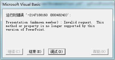 究其原因,应是教案上参数设置过多,将ppFixedFormatIntentScreen后面的多余参数全部删除即可。