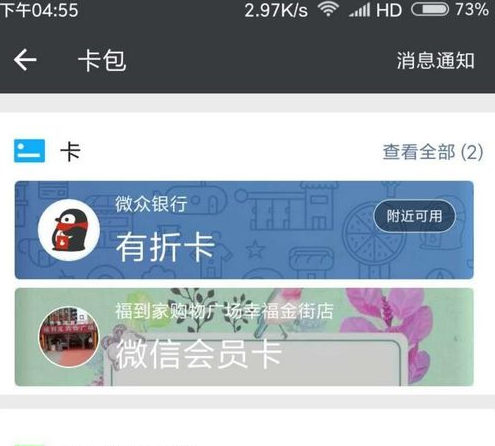 点击卡包,点击有折卡