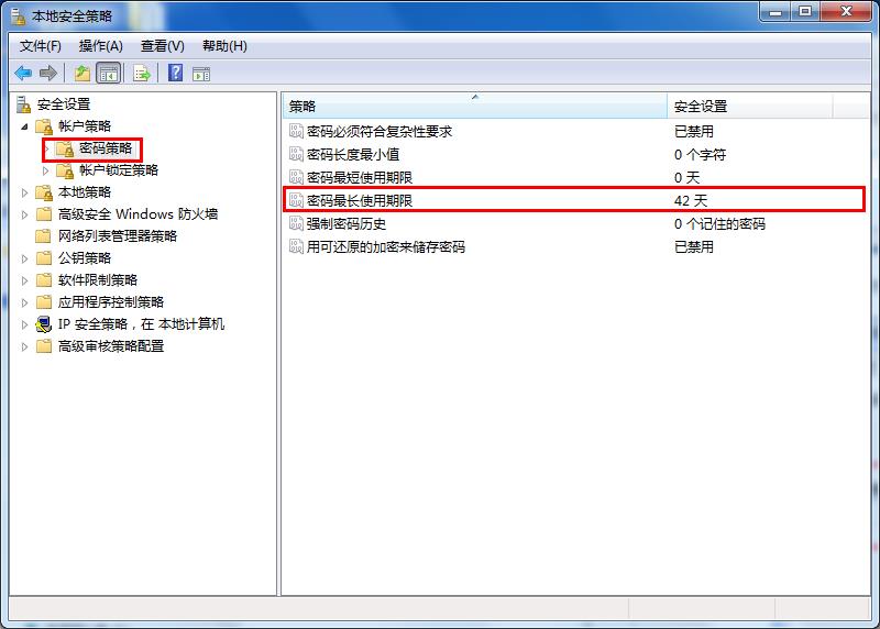 3、展开至“安全设置》帐户策略》密码策略”,在右侧双击打开“密码最长使用期限”;
