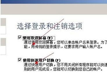 3.不过不同于以前的更改用户账户类型的操作,咱们这里需要的是在用户账户窗口中点击更改用户登录或注销的方式,然后在弹出来的窗口中,将使用欢迎屏幕和使用快速用户切换前的两个勾取消勾选,去掉之后,也就是说咱们的电脑只能使用咱们自己设置的账户密码登录了。