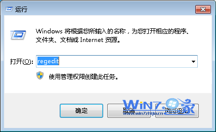 1、打开开始菜单中的运行,在运行对话框中输入“regedit”,回车打开注册表编辑器;