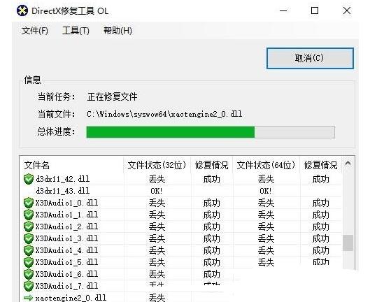 2、将下载好的压缩包解压出来,运行“DirectX_Repair.exe” 点击【检查并修复】,让后耐心等待修复;