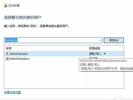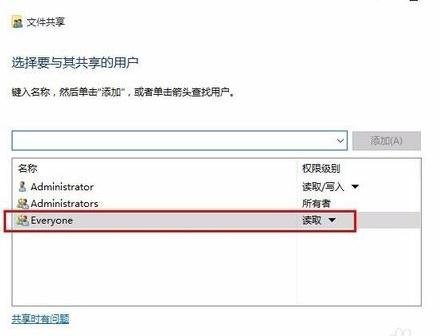 添加你想共享的用户名,如果向所有的用户开放则需要添加【Everyone】这个用户。据需要调整权限级别