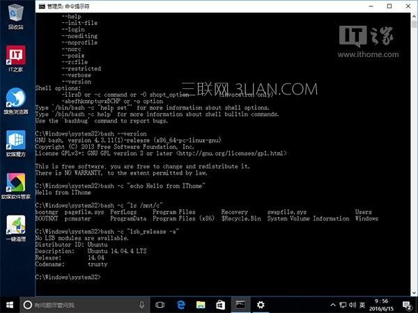 微软已经在Win10一周年更新预览版中加入了Ubuntu Bash命令支持,IT之家也曾经介绍过如何安装和开启Win10版Linux Bash命令。不过还是有用户在开启后不太会用,这次我们就介绍一下Windows10版Bash命令的使用方法,格式特别简单,套用就好。