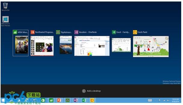 Windows 10 全新任务栏视图按钮可以快速切换打开的应用,同时支持切换创建的虚拟桌面。