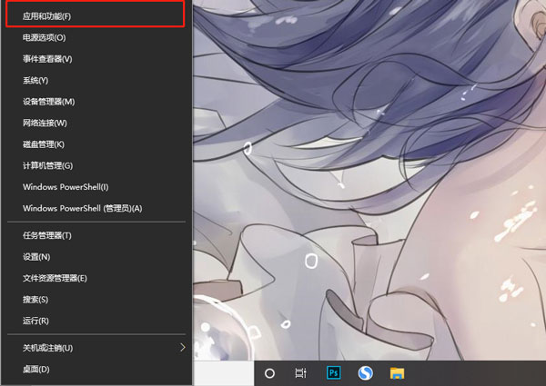 1、首先在开始菜单上单击右键,选择【程序和功能】,或者选择【应用和功能】;