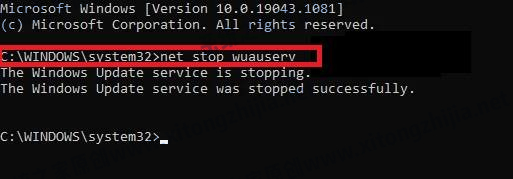 键入以下命令,并在每个命令后按Enter:net stop wuauserv