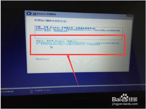 6、然后进入“你想执行那种类型的安装”,我们一般都是选择自定义安装。