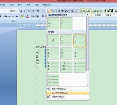 选中各列已编号文字,点击编号按钮右侧箭头,选中“定义新编号格式”,打开