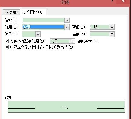 在对话框中,点击第一排右侧“字体”标识,打开,点击“字符间距”,第二排“间距”,选择“紧缩”,确定