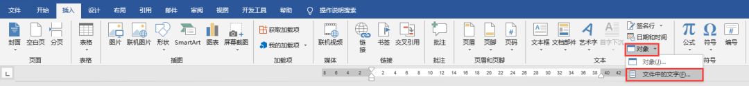 只需点击【插入】-【对象】按钮,在弹出的菜单中选择”文件中的文字“命令。打开”插入文件“对话框,选择要合并的多个子文档(注:这里文档的顺序直接决定了文档合并后内容的顺序,因此文档排序需谨慎),单击”插入“按钮。