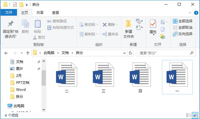 步骤五:另存当前Word文档,文档即拆分完毕,在电脑中打开存储文件夹即可查看拆分的子文档。