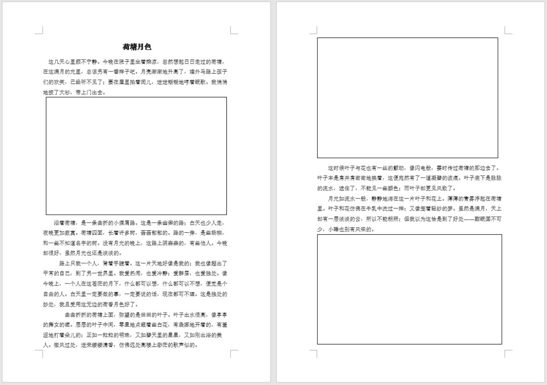 此时,文档中的所有图片即显示为一个空白的黑色边框线,效果如下图所示。