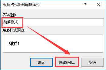 第二步:打开“根据格式化创建新样式”对话框,输入样式的名称,然后单击“修改”按钮。