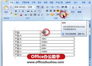 1、将光标置于表格中的任意单元格中,在“开始”选项卡的“段落”选项组中,单击【排序】按钮,如图1所示。
