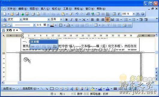 先在文档中要插入文本框的位置单击鼠标,然后在菜单栏中单击“插入——文本框(横或竖文本框)”,也可以直接在绘图工具栏中单击“文本框”按钮(如图01),然后拖动鼠标,即可绘制出所需的文本框。