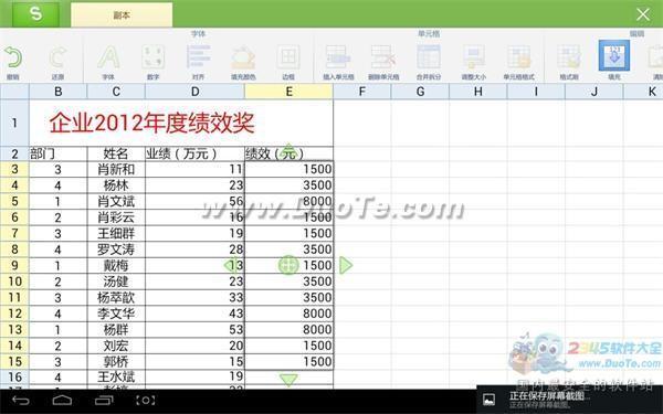 在得出肖新和的绩效奖后,手指点一下绩效奖数值,然后在WPS移动版的“填充”菜单下选择“拖动填充”,接着用手指向下拖动即可自动得出所有员工的绩效奖,既简单又容易。