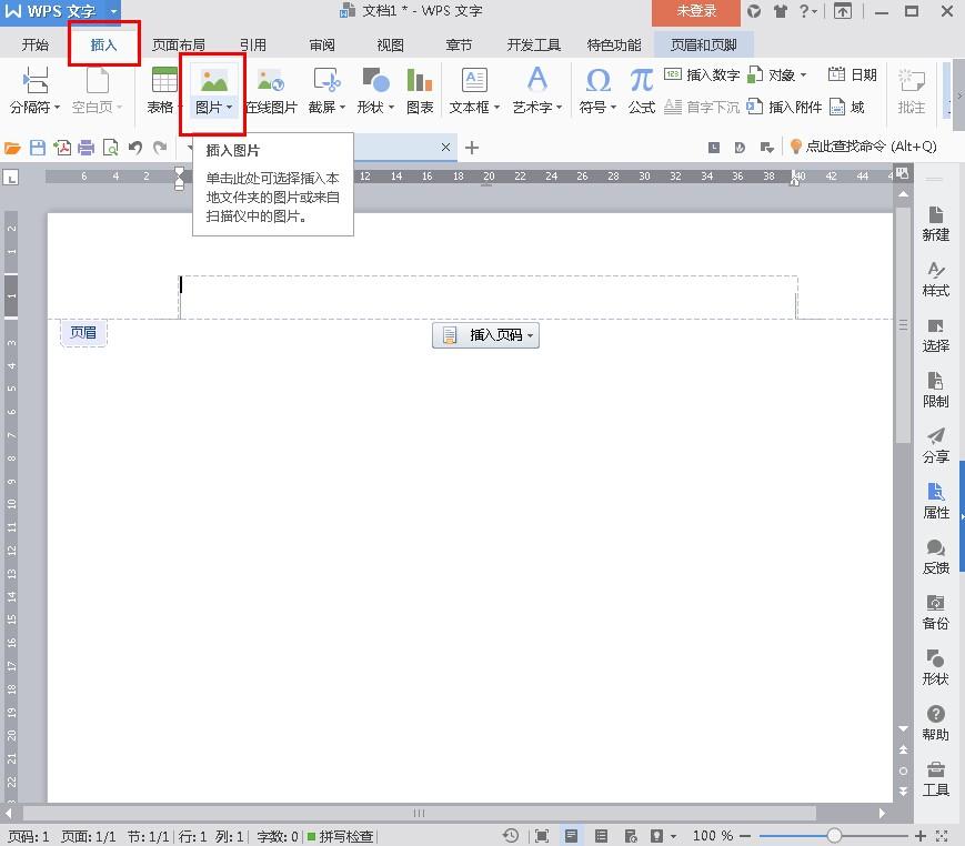 1.打开需要添加图片背景的WPS文档,然后点击“插入”,插入“页眉和页脚”